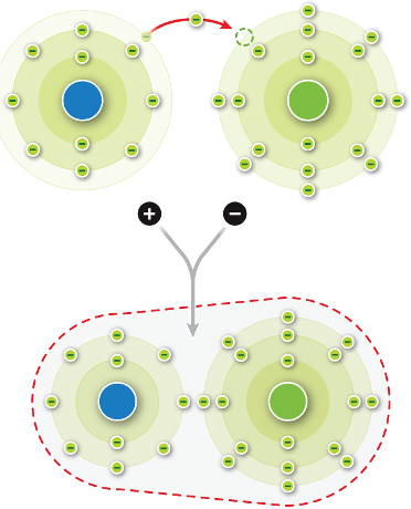 What is the atomic number of the negatively charged ion formed in the diagram?